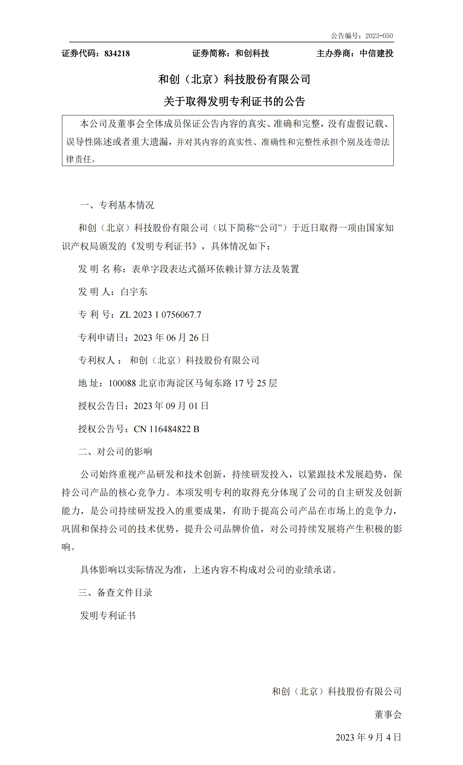 公司始終重視產(chǎn)品研發(fā)和技術(shù)創(chuàng)新,持續(xù)研發(fā)投入,以緊跟技術(shù)發(fā)展趨勢,保持公司產(chǎn)品的核心競爭力。這兩項發(fā)明專利的取得充分體現(xiàn)了公司的自主研發(fā)及創(chuàng)新能力,是公司持續(xù)研發(fā)投入的重要成果,有助于提高公司產(chǎn)品在市場上的競爭力,鞏固和保持公司的技術(shù)優(yōu)勢,提升公司品牌價值,對公司持續(xù)發(fā)展將產(chǎn)生積極的影響。