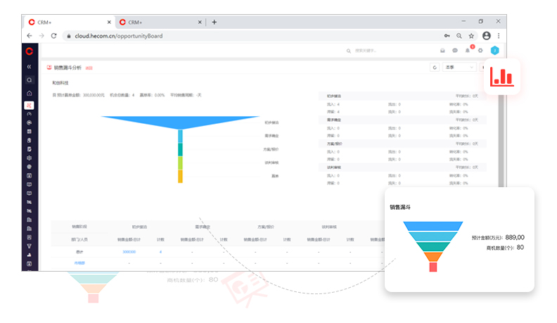 銷售預(yù)測(cè)更準(zhǔn)確:通過(guò)銷售漏斗實(shí)時(shí)監(jiān)控銷售進(jìn)展,準(zhǔn)確預(yù)測(cè)銷售產(chǎn)出