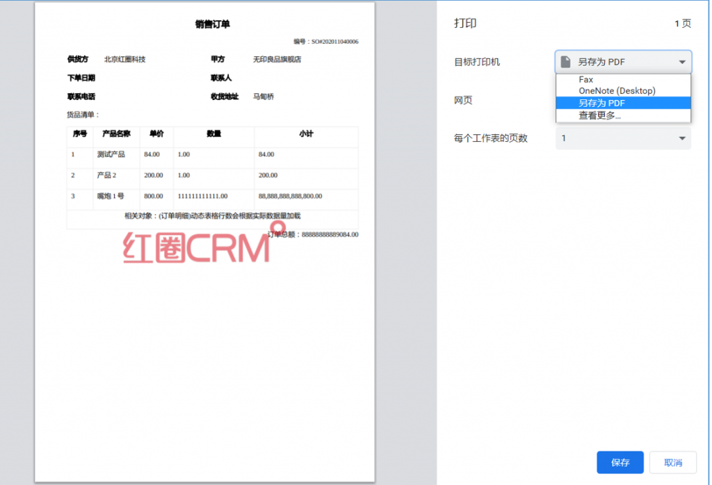 點(diǎn)擊打印后,如果保存為PDF文件,則文件帶水印