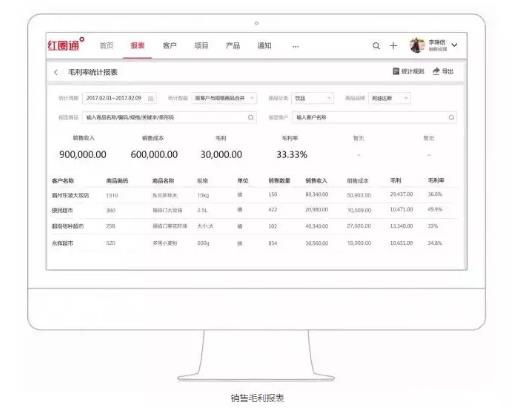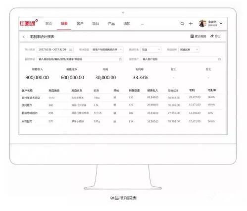為幫助企業清晰地獲知銷售收入與利潤、做出更合適的業務決策,紅圈通進銷存提供了銷售毛利報表、訂退單報表、商品銷售報表、客戶訂貨報表、區域銷售報表等五大類報表,從訂單變動趨勢、商品、客戶、區域等多個角度進行數據分析統計。通過報表,企業可實時掌控銷售現狀、獲知市場布局,進而優化資源投放。