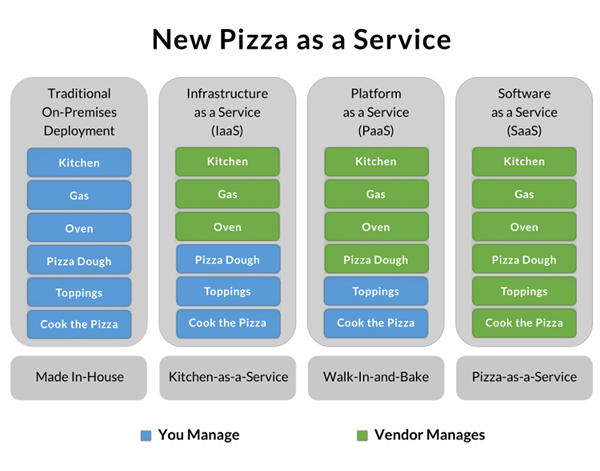 IBM 的軟件架構(gòu)師 Albert Barron 曾經(jīng)使用披薩作為比喻,解釋這個問題。David Ng 進一步引申,讓它變得更準(zhǔn)確易懂。