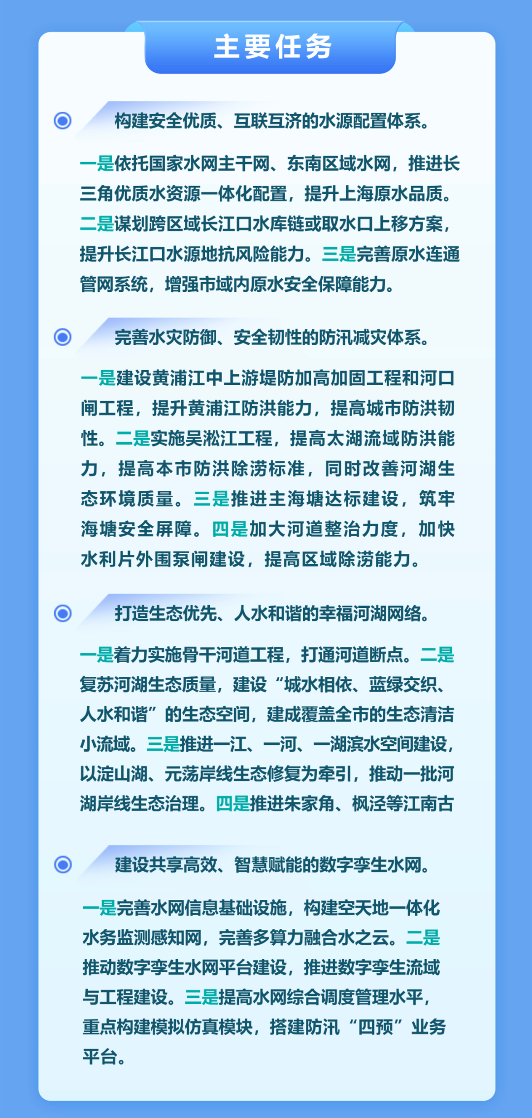 四是建設(shè)共享高效、智慧賦能的數(shù)字孿生水網(wǎng),包括完善水網(wǎng)信息基礎(chǔ)設(shè)施,推動(dòng)數(shù)字孿生水網(wǎng)平臺(tái)建設(shè),提高水網(wǎng)綜合調(diào)度管理水平等。
