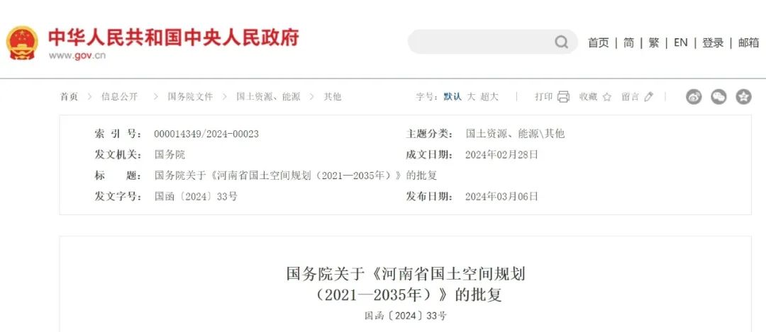 近日,國務(wù)院發(fā)布關(guān)于《河南省國土空間規(guī)劃(2021—2035年)》的批復(fù)。