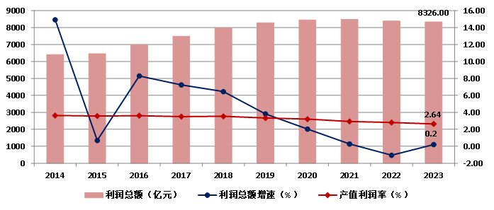 圖9 2014-2023年全國建筑業(yè)企業(yè)利潤總額及產(chǎn)值利潤率