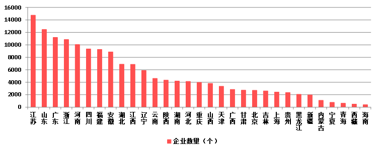 圖21 2023年各地區(qū)建筑業(yè)企業(yè)數(shù)量