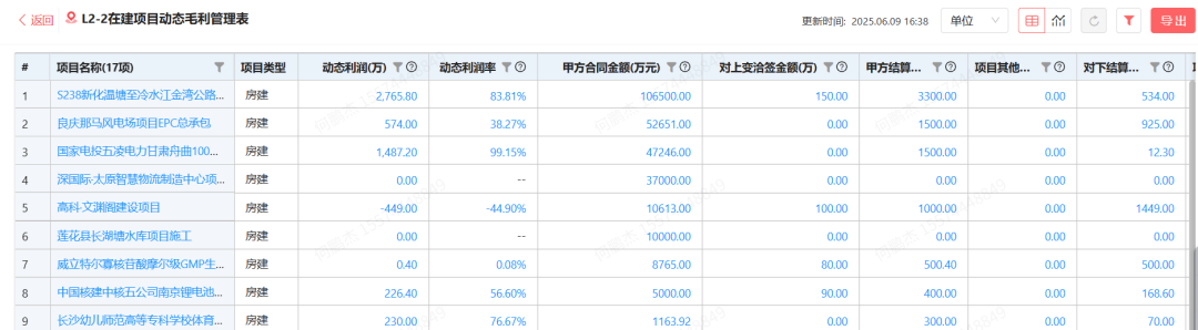 ○ 利潤管理模塊(項目利潤守護者): 實時呈現項目動態成本與利潤數據。公司高層可隨時掌握各項目利潤達成情況,對利潤不達標的項目及時預警并干預糾偏,確保項目利潤符合預期目標。