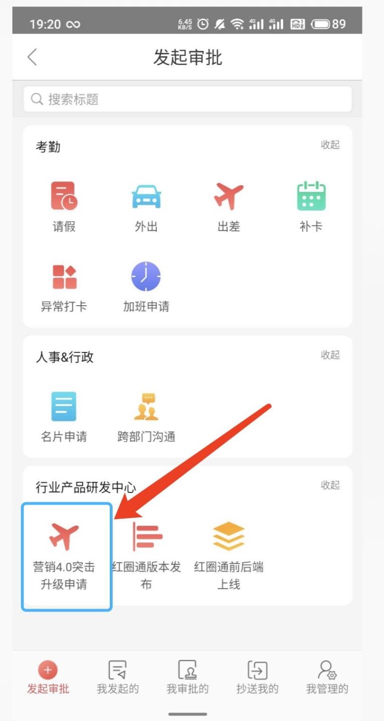 發(fā)起方式:紅圈通高級審批-------營銷4.0突擊升級申請模板